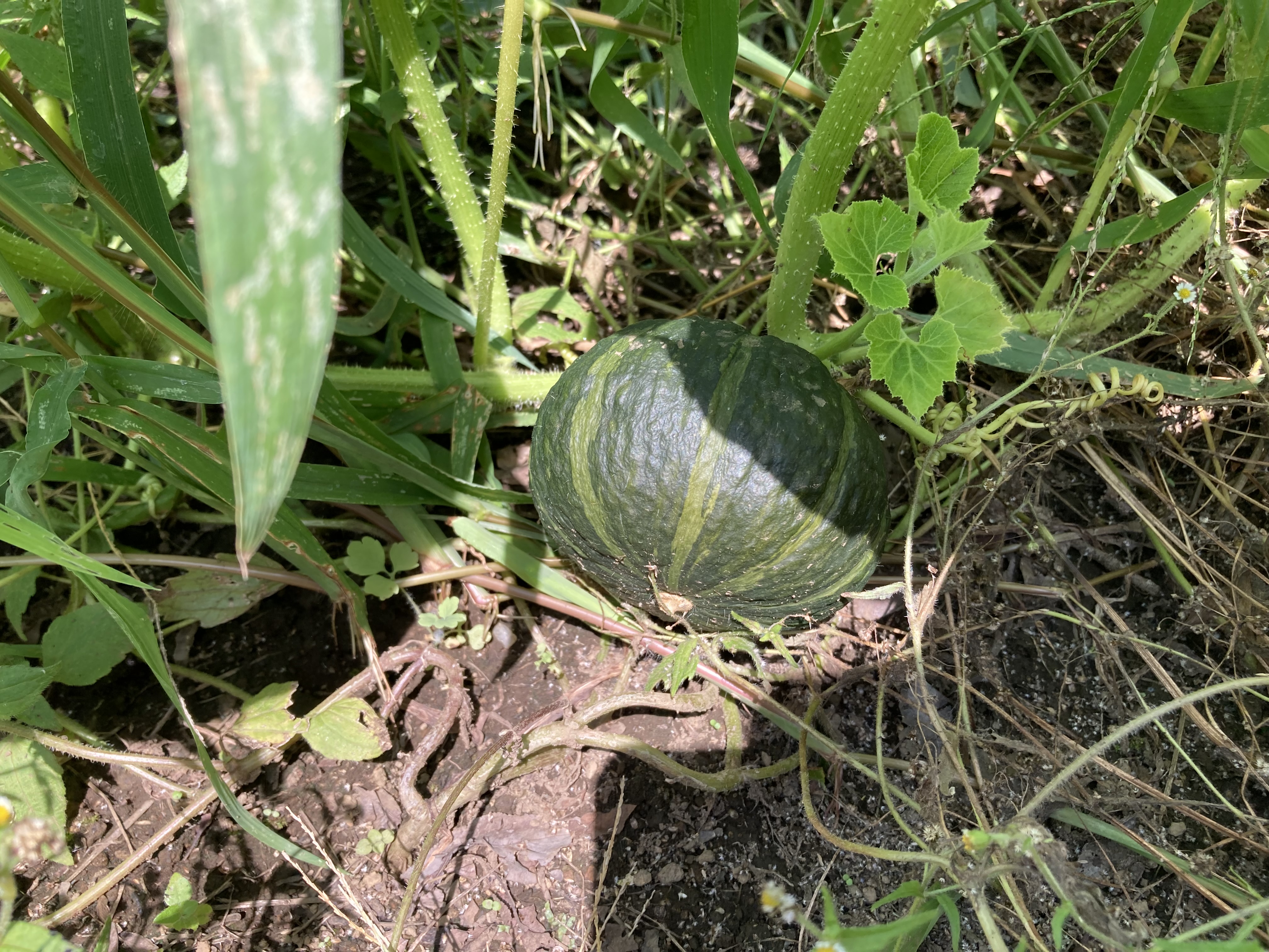7月の上旬には花を付け8月の上旬には2個ほど収穫でき、その後も2週間おきに2~3個収穫できまた、植え付け当初は虫にやられてどうなることかと思ったのですが2株はそれぞれ4個ほど収穫できました、まだこの先も幾つか収穫できそうですが一旦実験は終了とし次回には蔓を抜こうと思います。