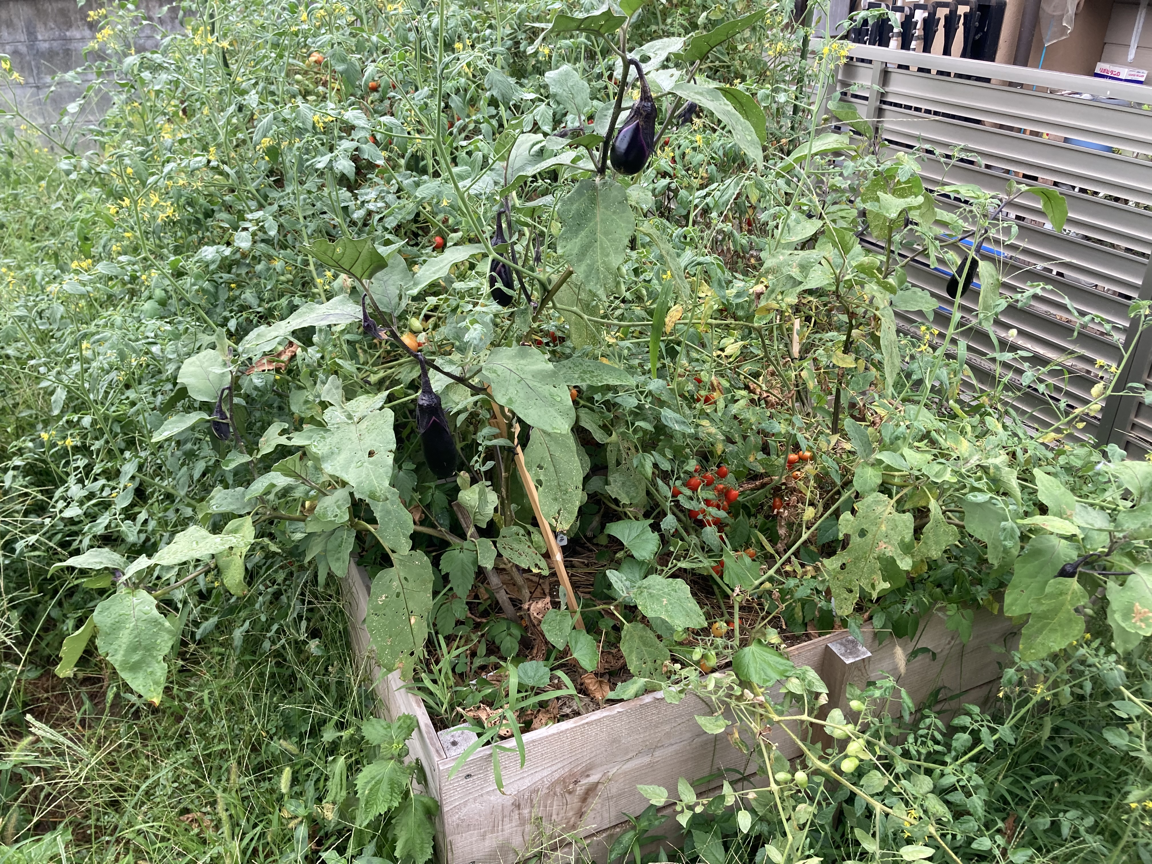 農地栽培において自然農を取り入れた放置栽培を実践するにあたり自作の木枠でレイズドベッドを造り、そこに各種の野菜を植えて実験を開始しています、第二弾のミニトマトはあっという間に大きく育ち何と4ヶ月半もの期間に順次収穫できこれまでに2,000個は収穫したと思います。