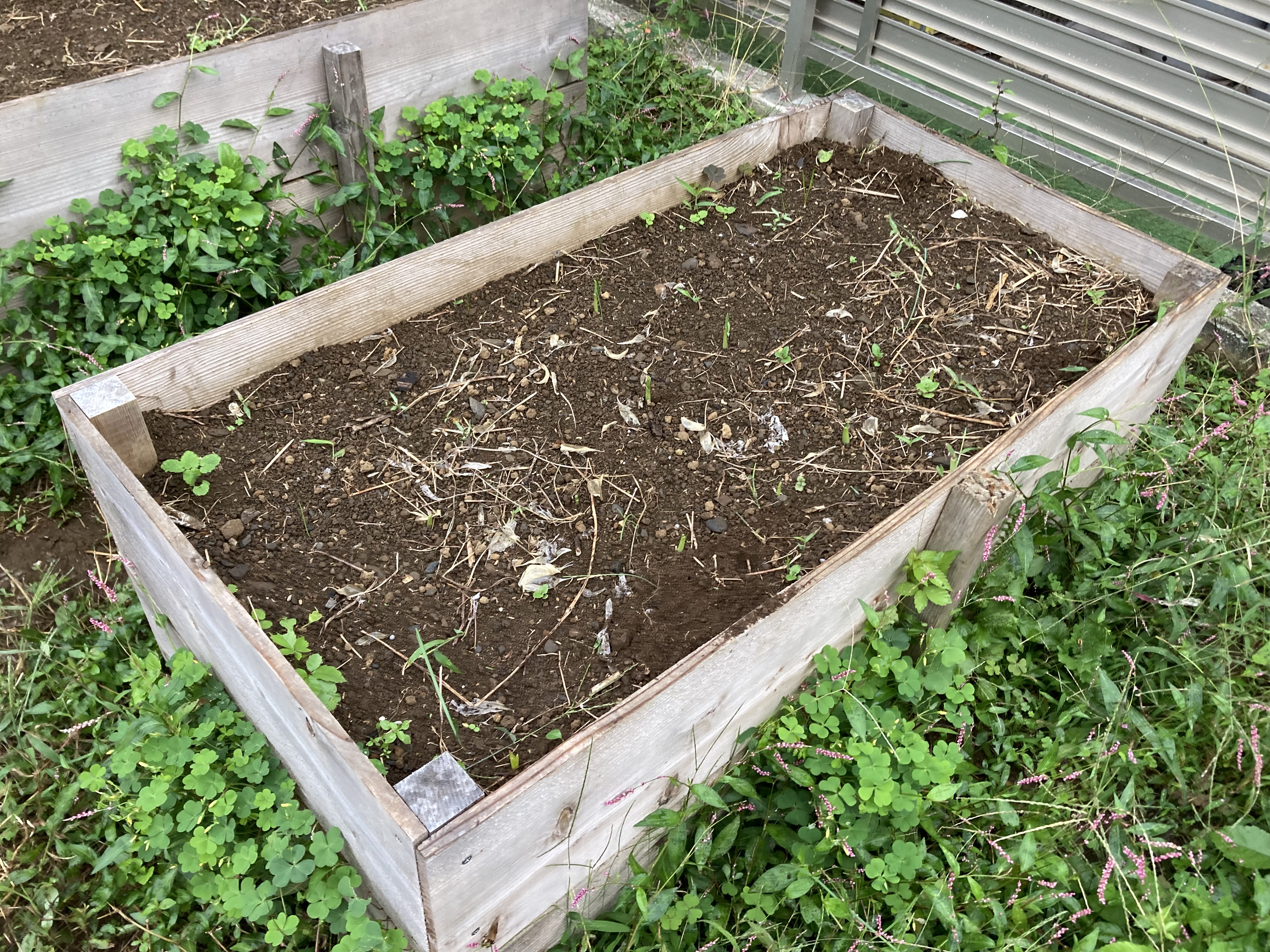 ジャガイモ~チャマメと春から大活躍のレイズドベッド1号&2号ですが、チャマメの収穫後2週間休めて来春に収穫できるようにニンニク(国産大粒ニンニク)を植えました、それぞれに20個ほどと通常の畑の3倍ほど密に球根を植えました。