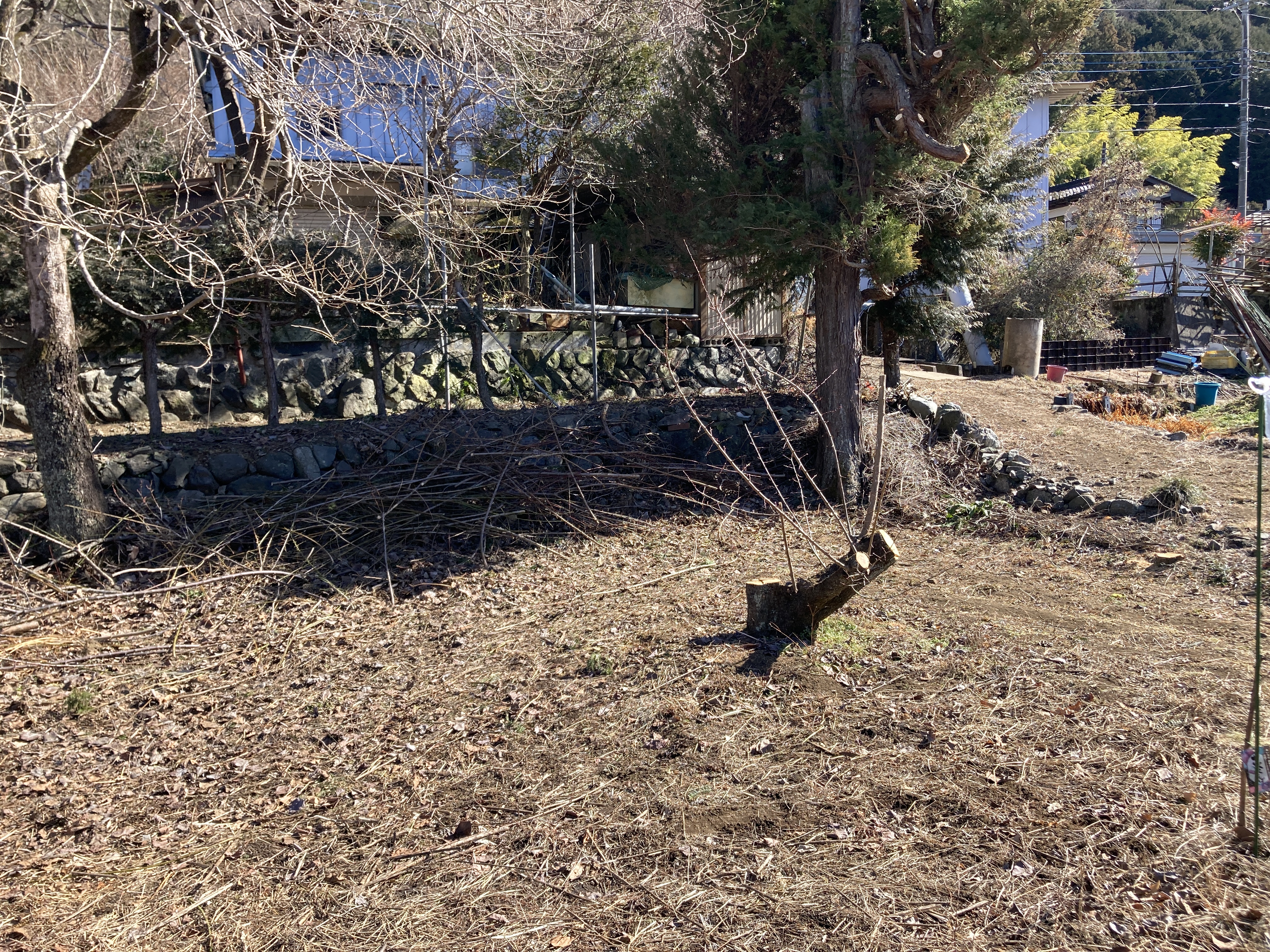 そこでこの冬に大掛かりな強剪定を実施しました、ほとんどの木は3分の1ほどに枝を整理し重なりが無いように太い枝からバッサリ切り落としました、強剪定とは木の手術であり生かすための緊急処置でもあります。