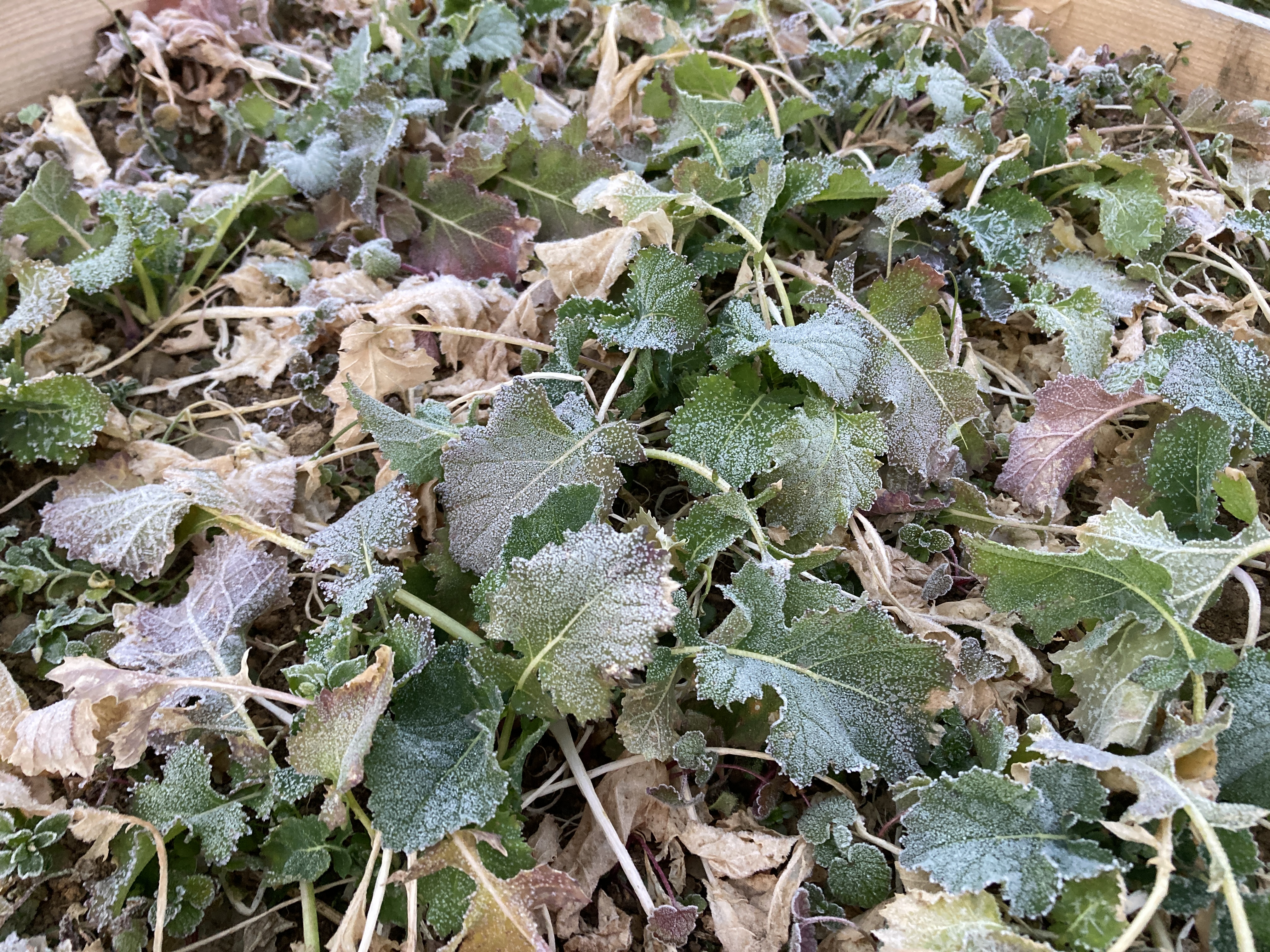 掻き菜は冬前に種蒔きして間引きする感じで幼苗を収穫しながら冬越しさせ春に花茎を最終収穫するという葉野菜です、花茎は菜の花のような味がするそうですので最終収穫が楽しみです。