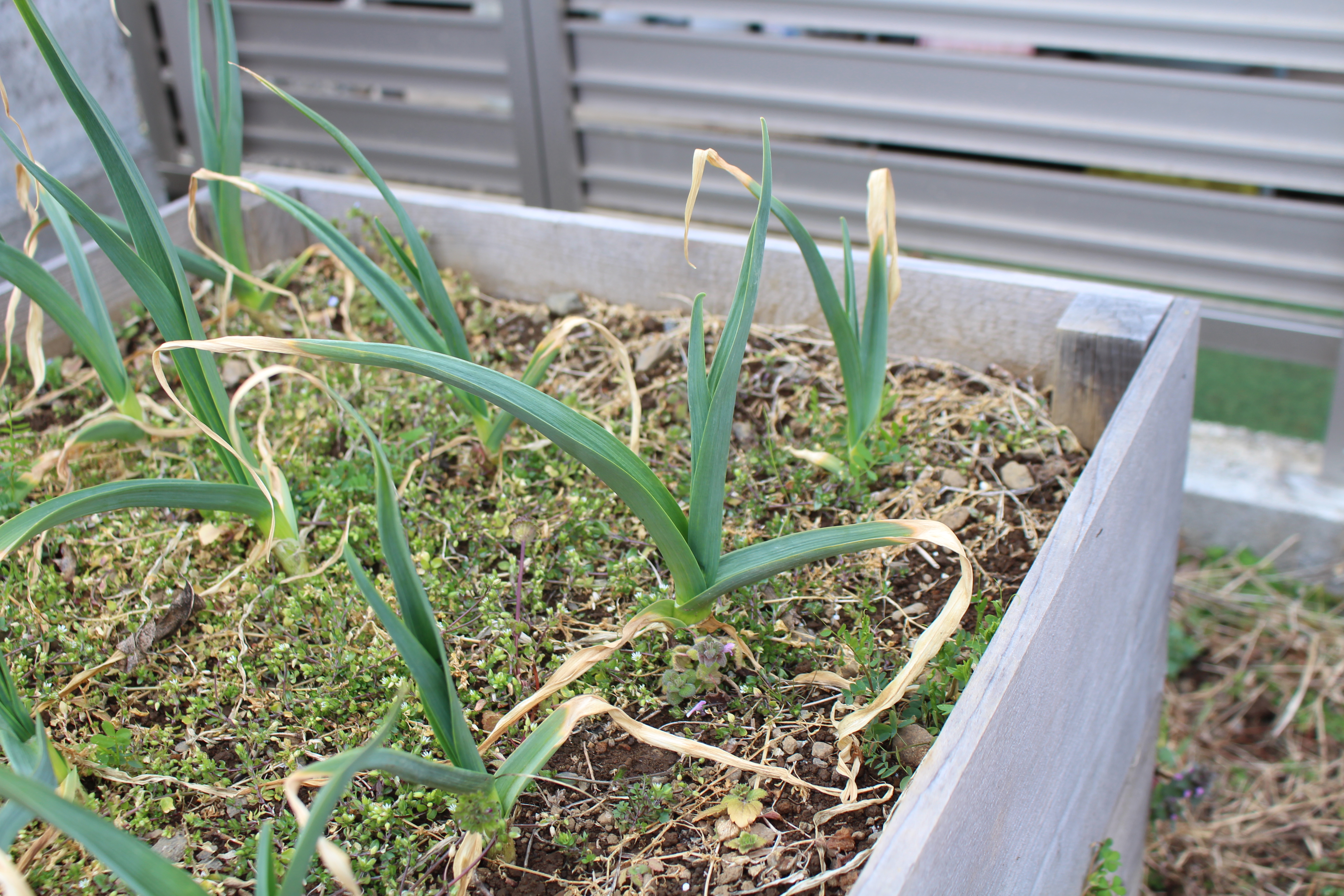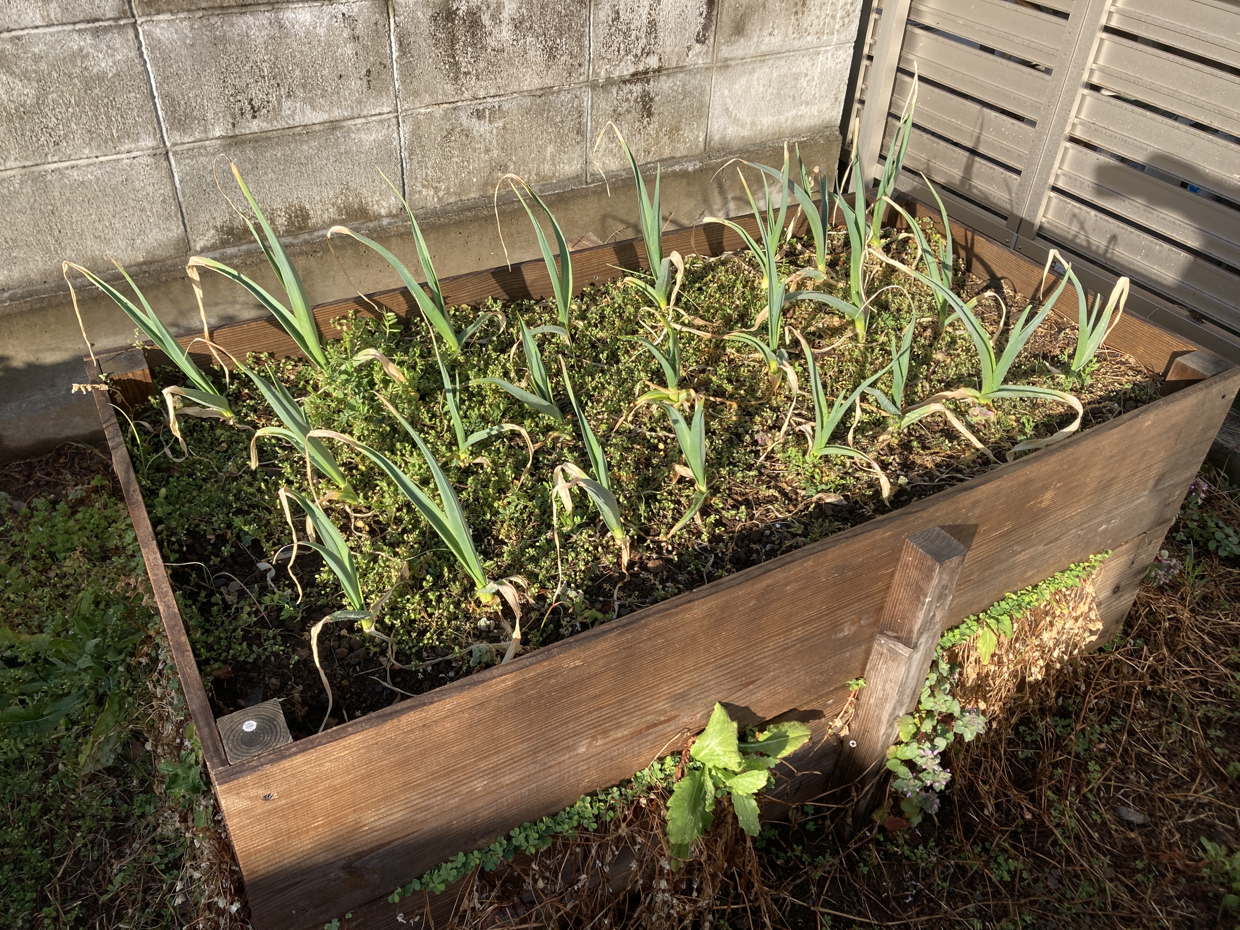 ジャガイモ~チャマメと春から大活躍のレイズドベッド1号&2号に来春収穫できるように9月下旬にニンニク(国産大粒ニンニク)を通常の3倍ほど密に植えました。