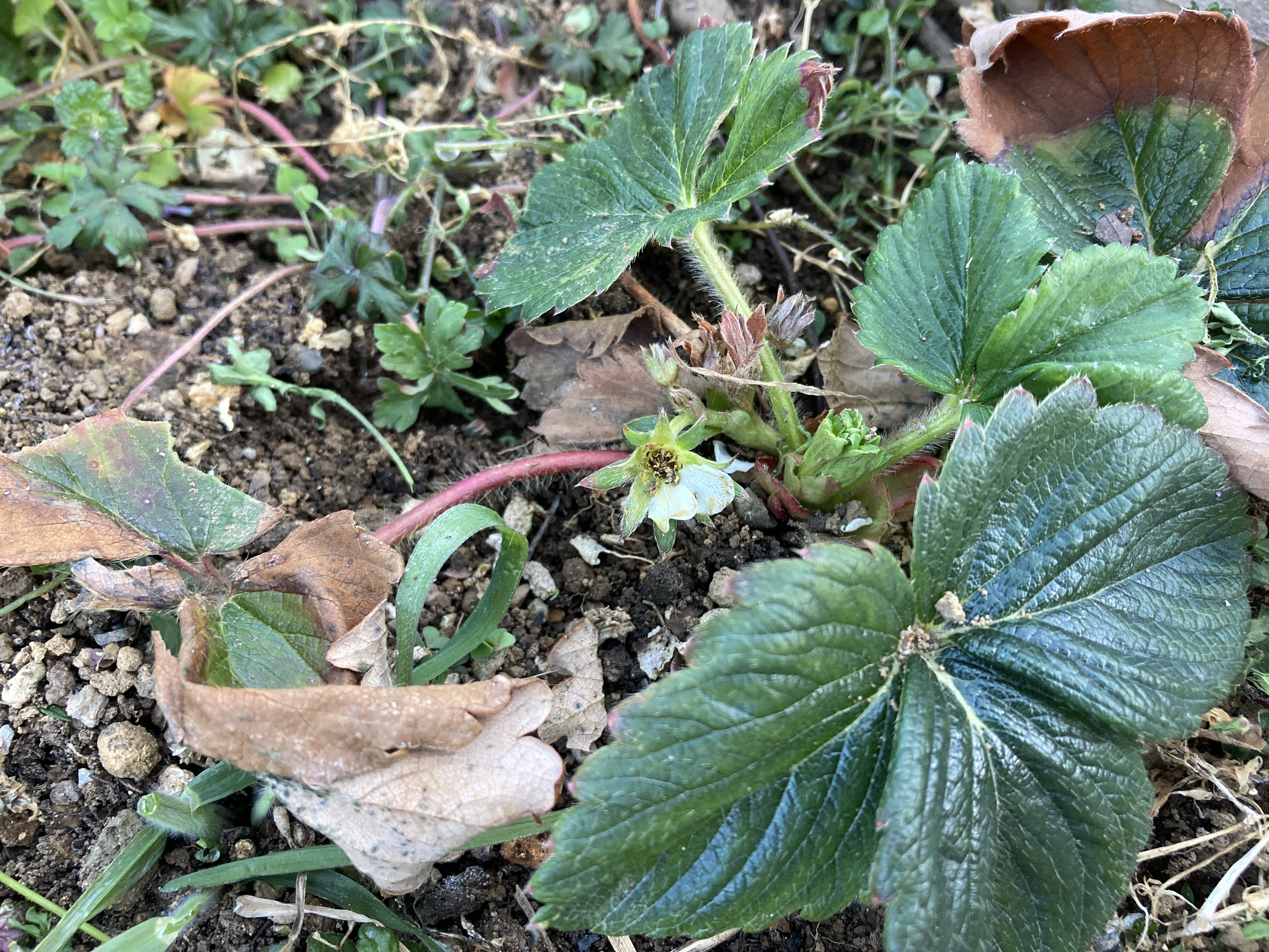 定植から3ヶ月後には本格的な冬に入りましたが霜に当たりながらも最低気温マイナス10度近いなかでも元気に生き続けました、寒気と乾燥で土の上は水気が無く完全に乾いた状態ですが不思議に枯れません。