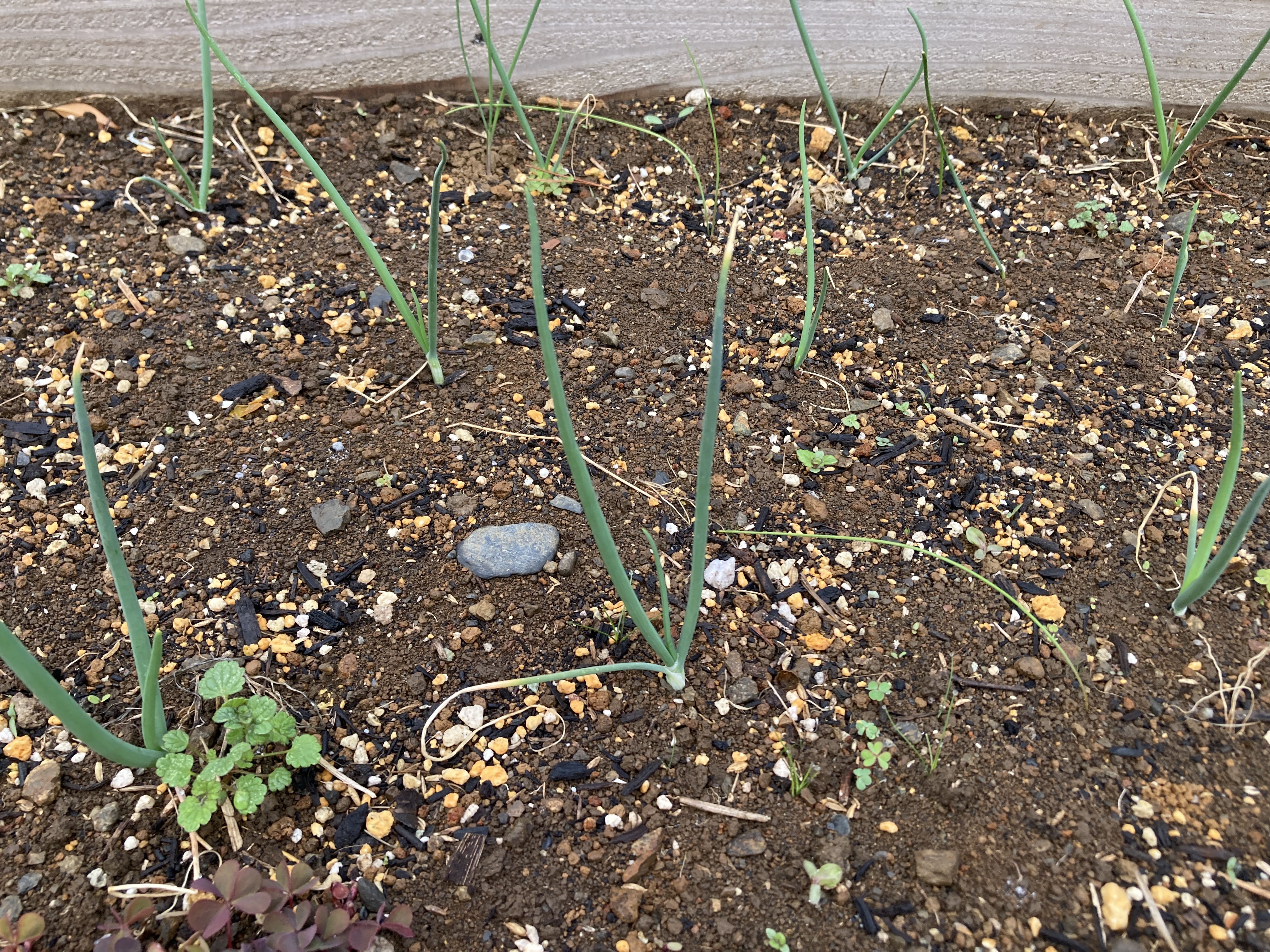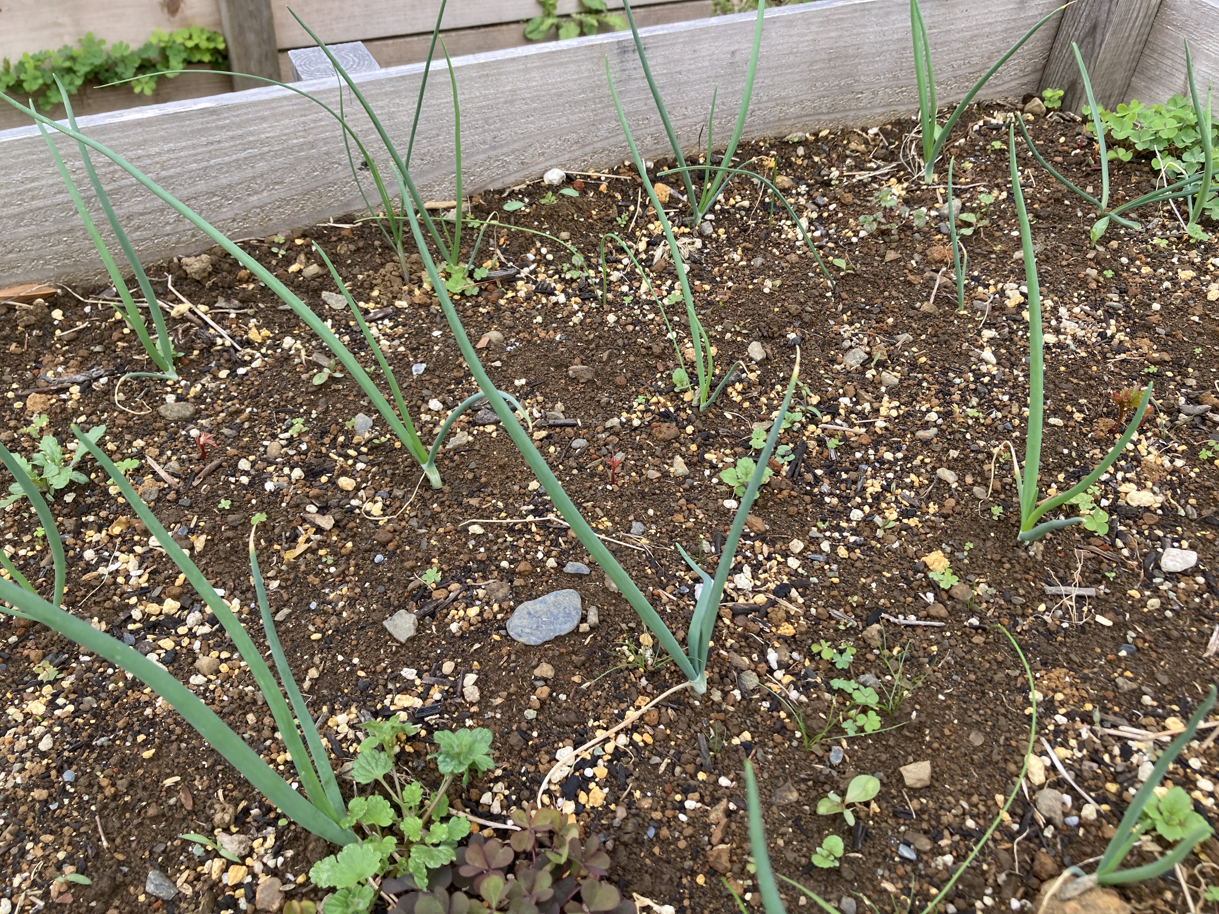 昨年11月上旬、4つのレイズドベッドにタマネギの苗を植えました、普通の白と赤タマネギを種から2ヶ月育てた苗を植えましたが種蒔きが遅かったのか苗がほとんど成長しておらず1か月後には枯れてしまったものもあります。