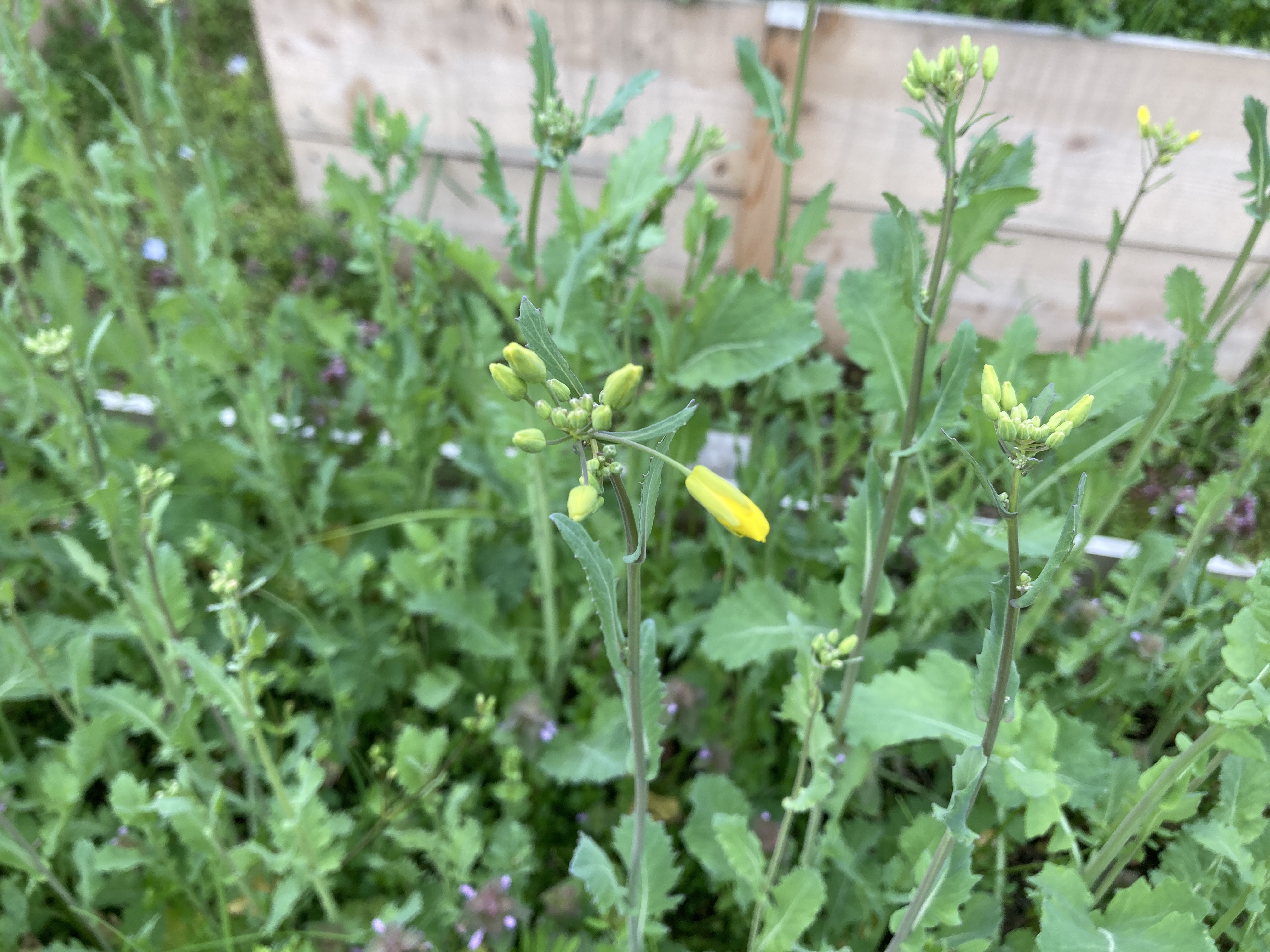 掻き菜は冬前に種蒔きして間引きする感じで幼苗を収穫しながら冬越しさせ春に花茎を最終収穫するという葉野菜です、花茎は菜の花のような味がするそうです。