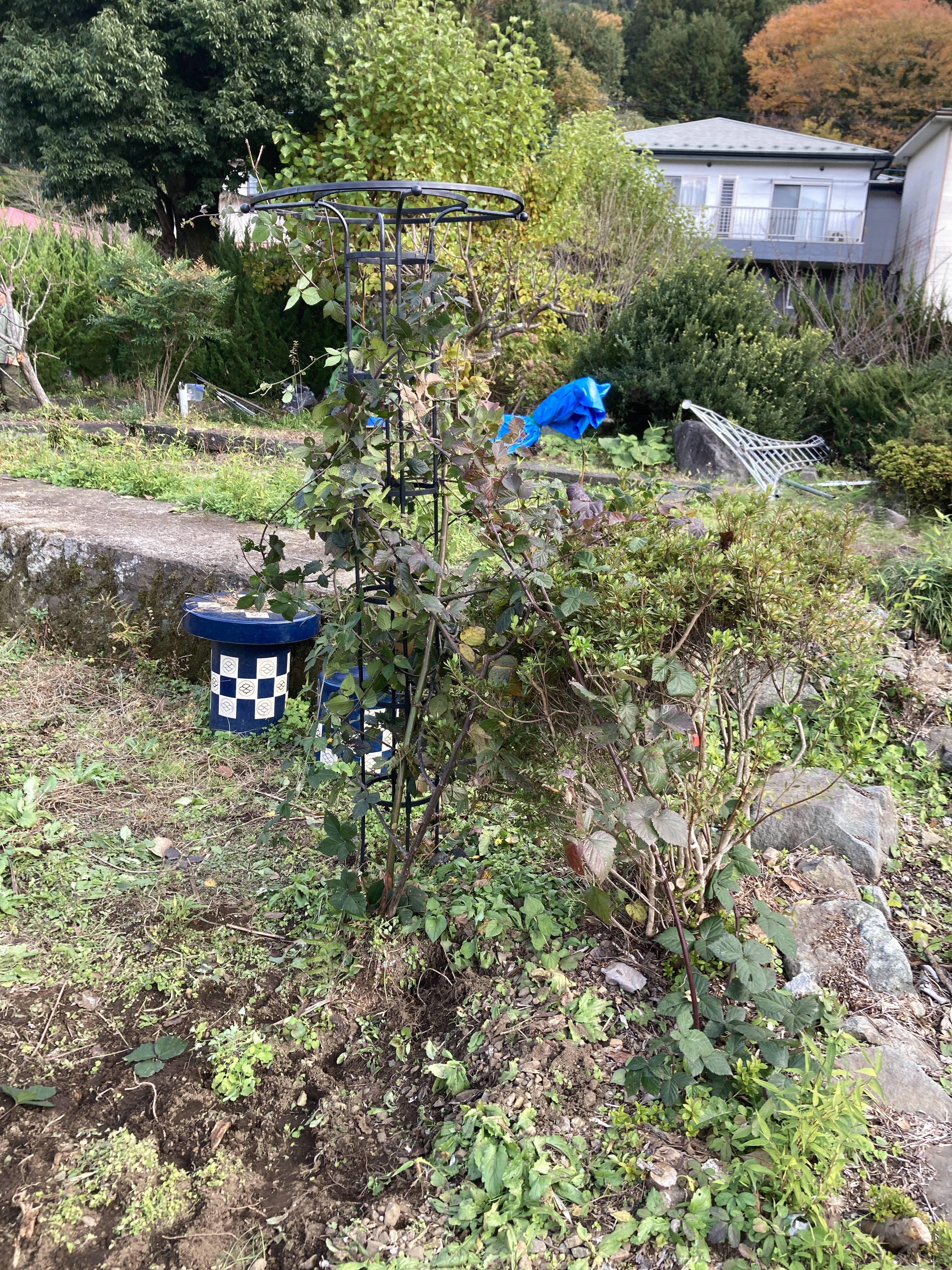 畑の脇に植わっていたブラックベリーですが春先に剪定で再生したくさんの実を収穫することができました、ただ気になるのが巻きつかせていた枯れ木です、枯れ木は虫を寄せ付けるし風通しが悪いのでブラックベリーにカビが生えたりしてしまいます。