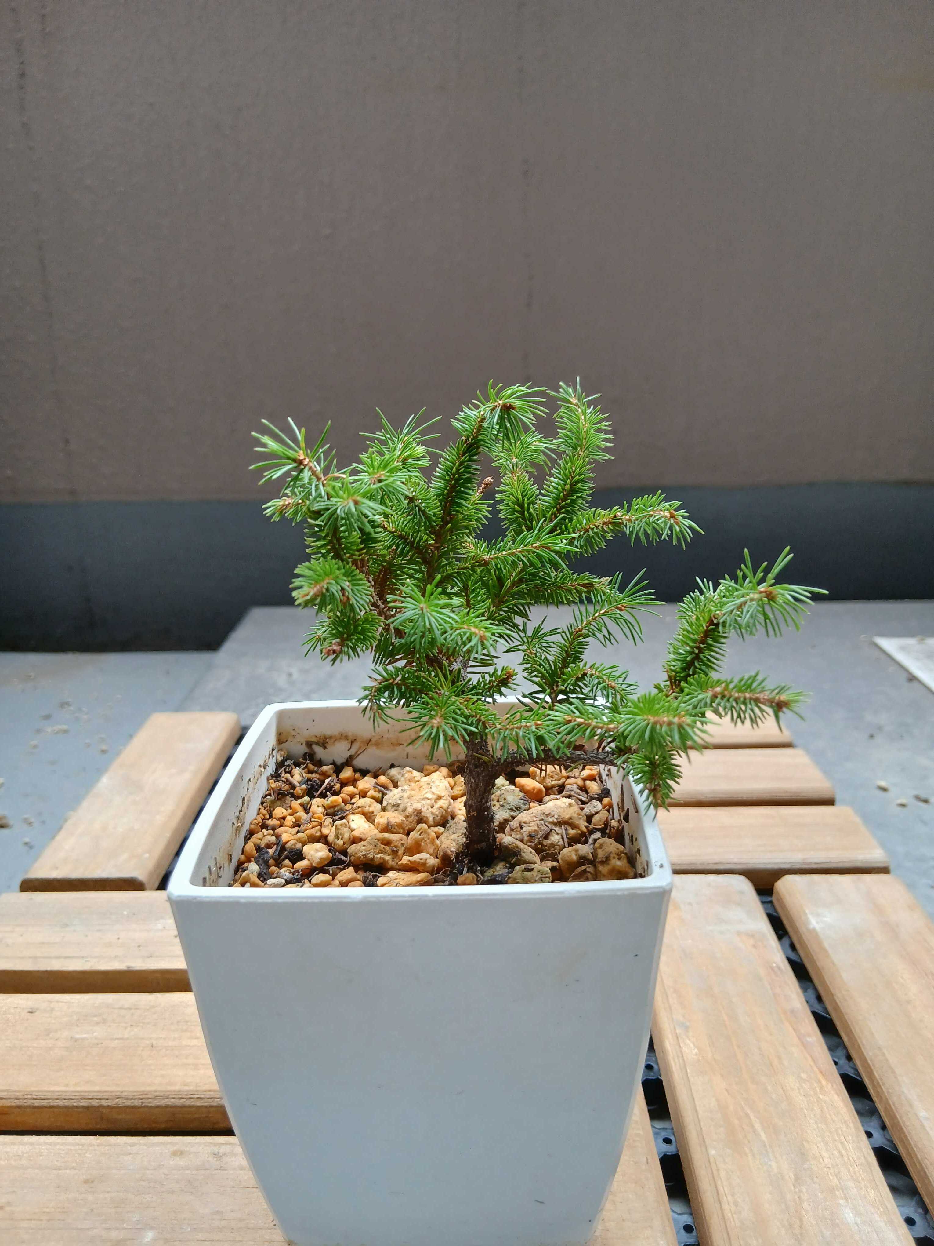 蝦夷松もベランダの直射日光が当たる場所に置いています。