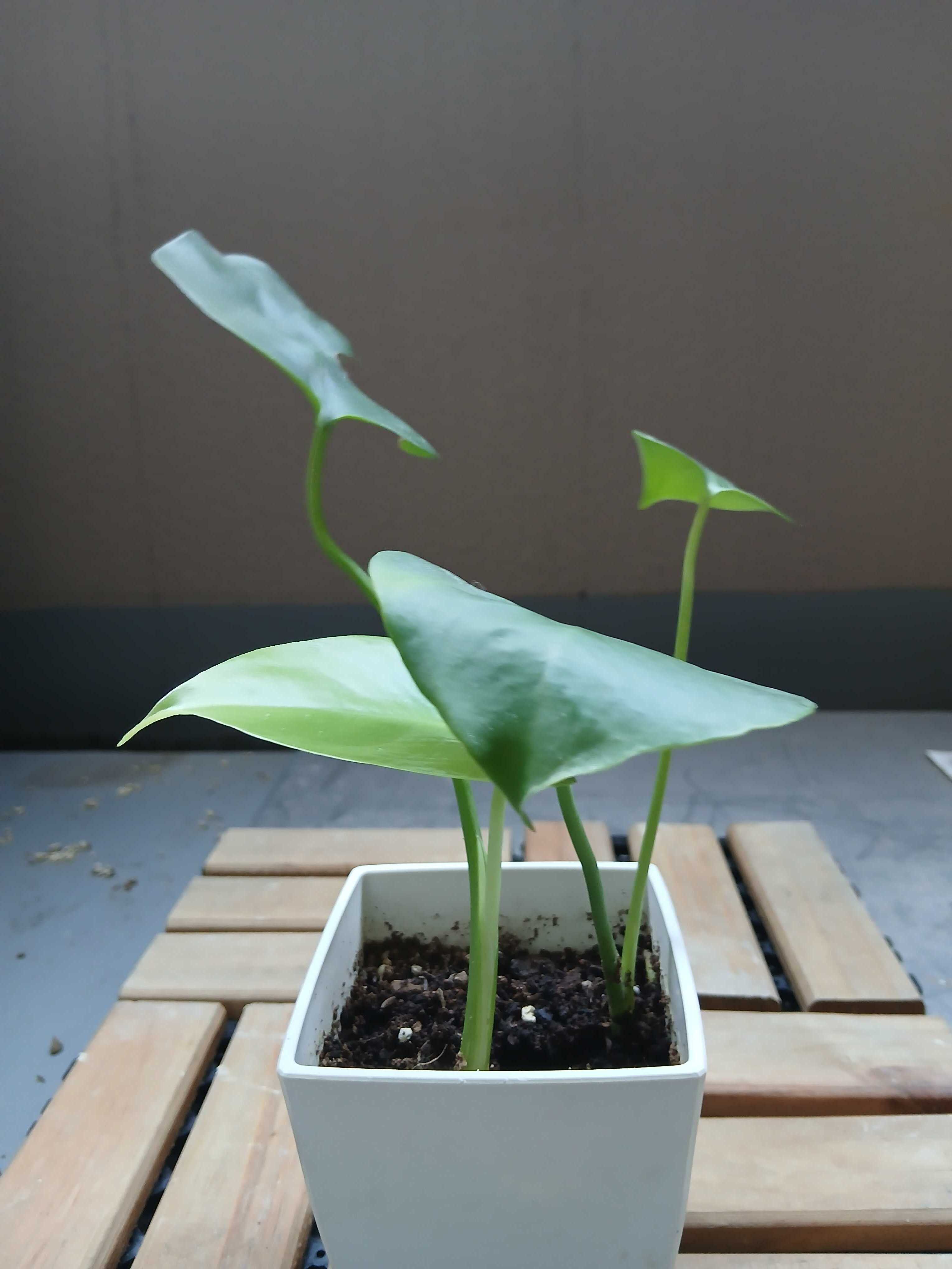 うちのモンステラは写真のような若株で、葉はまだ切れ込みがなくつるんとした形です。