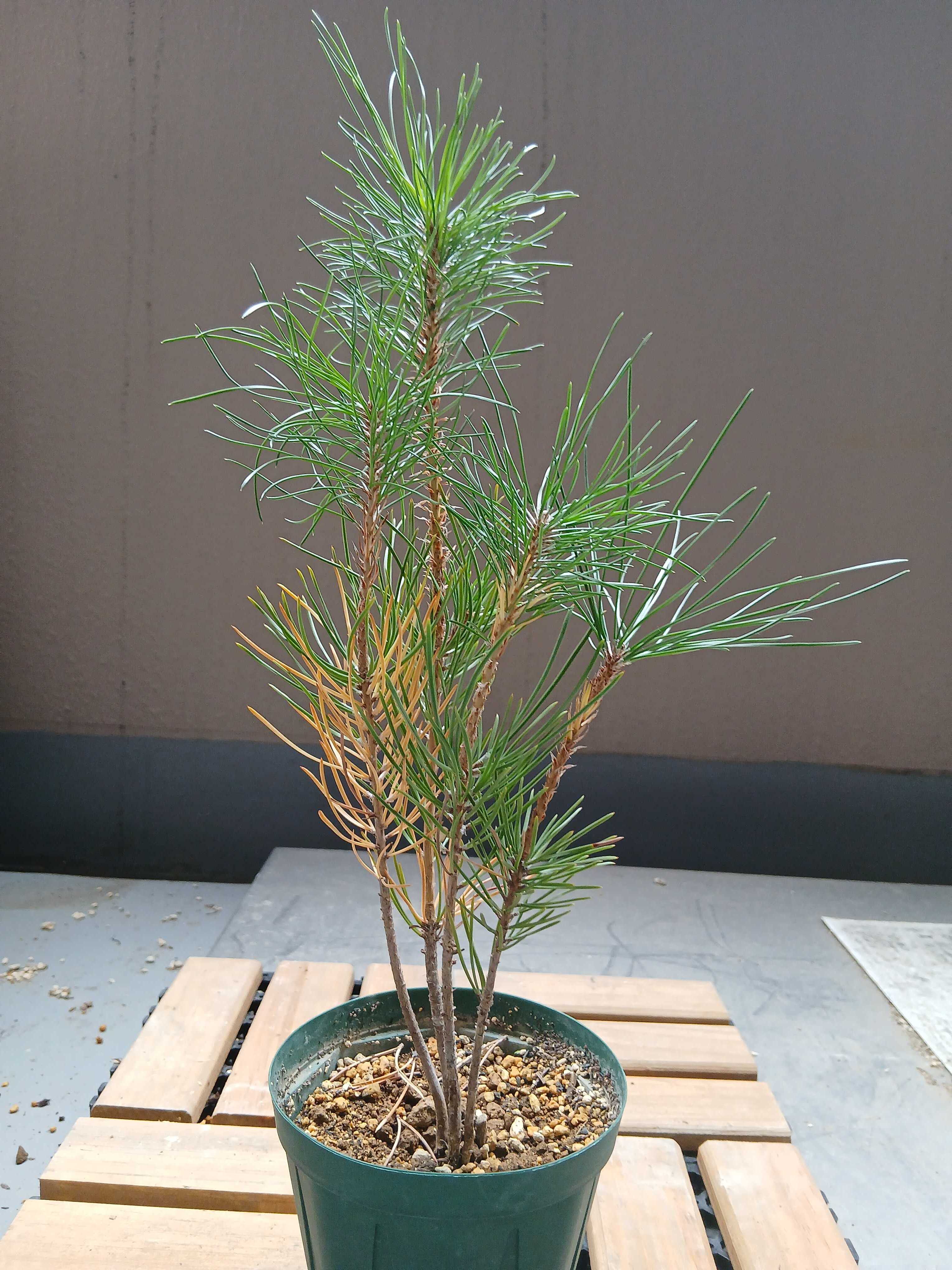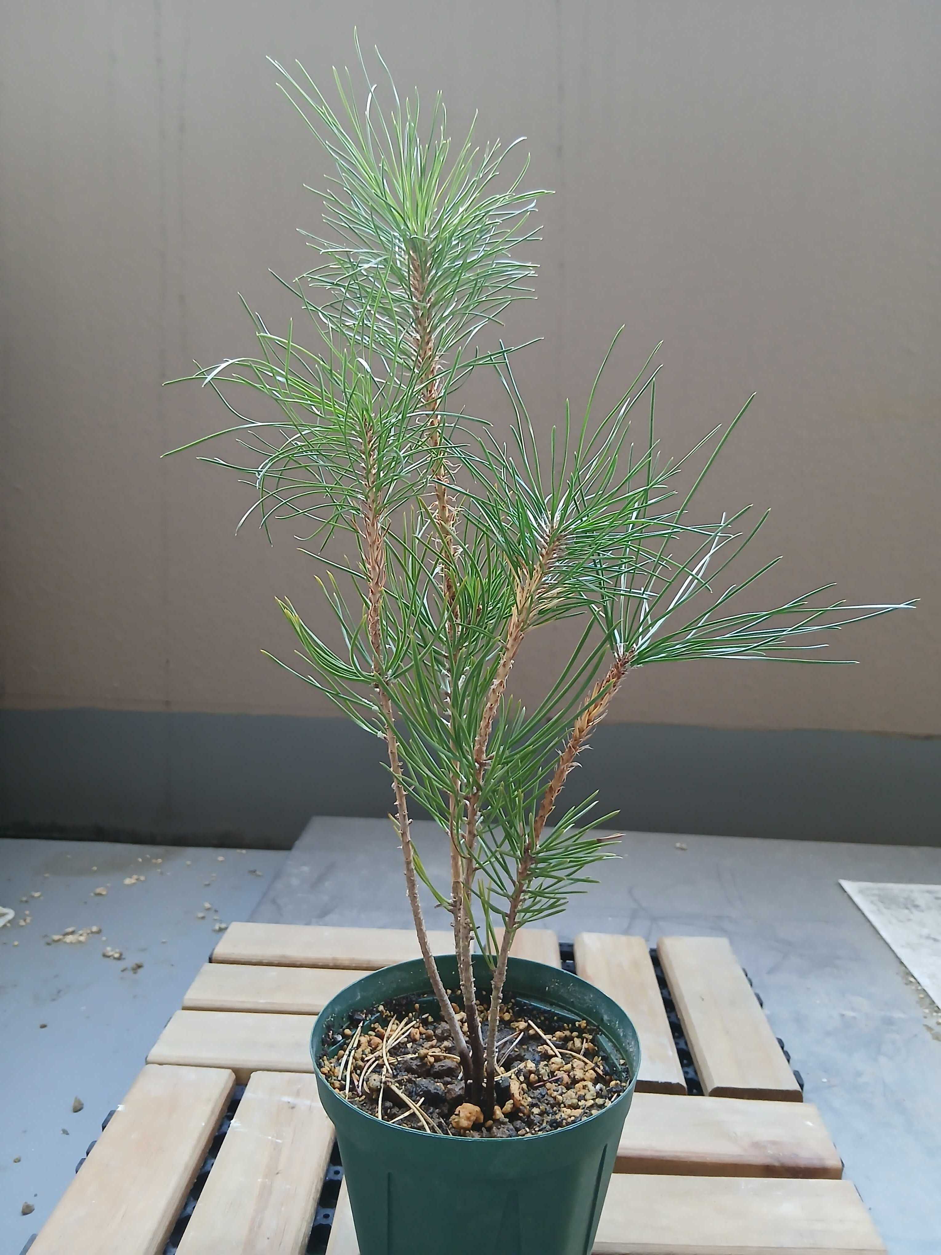 黒松はある程度伸びてきた段階で上を詰め枝を作りながら幹を太らせていくと聞きました。