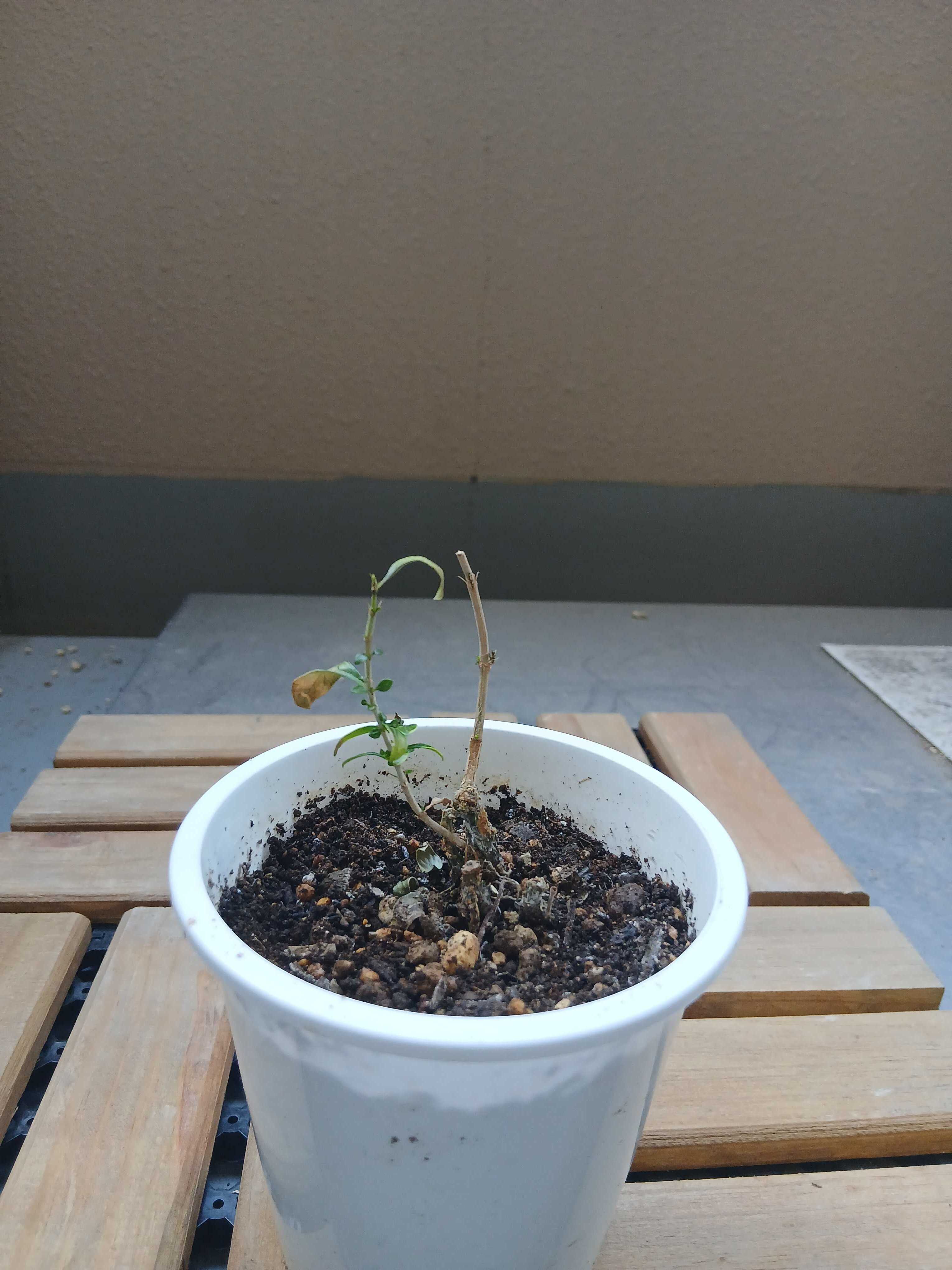 現在は室内で管理していますが、写真の通り青々としていた葉は少し減り枝が目立つ姿になってきました。