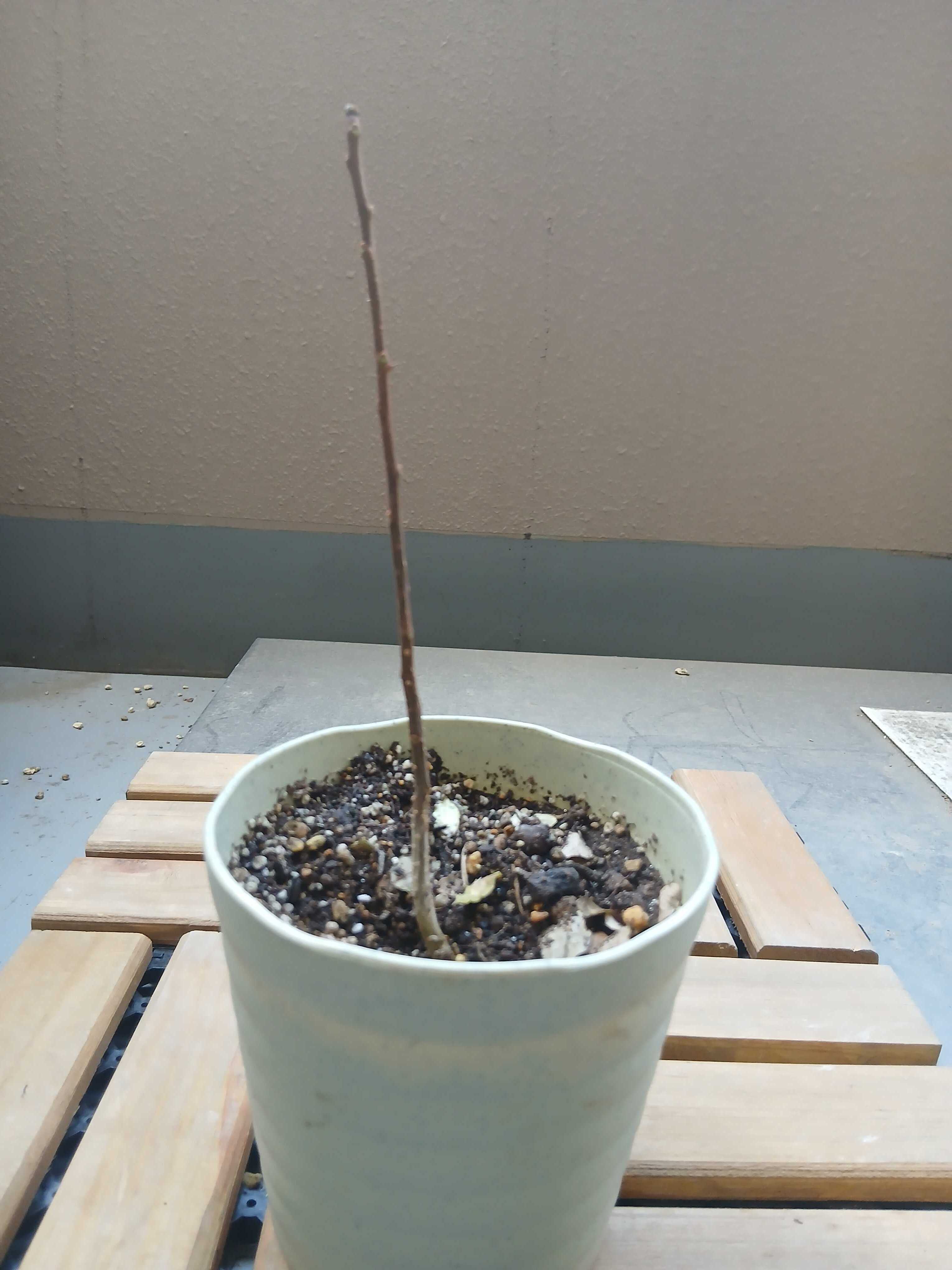 写真をご覧の通り、完全に落葉し鉢に一本の棒が刺さっているだけのような状態になりました。