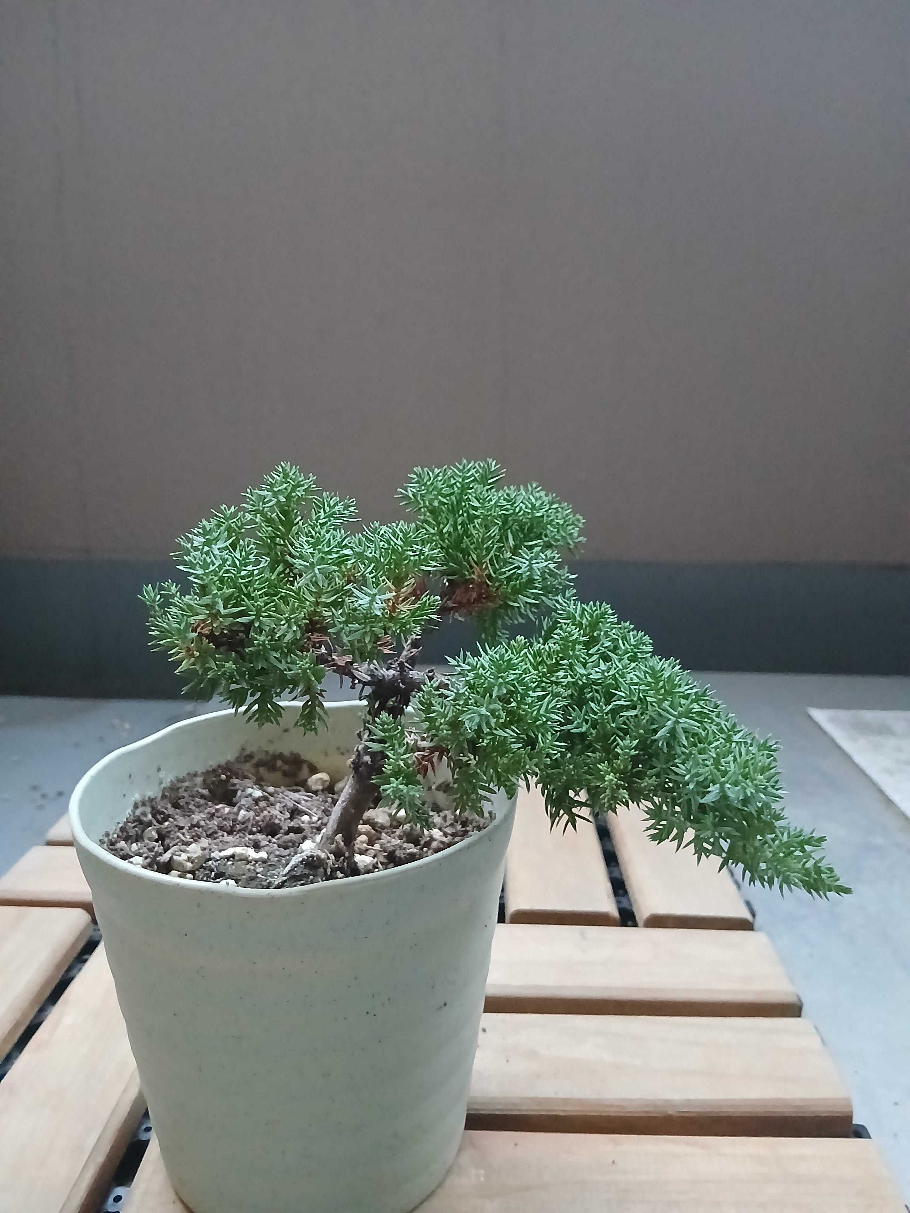 しかし改めて見つめてみると、吹き流しや斜幹の風情を纏いながらもより深みのある「半懸崖」の樹形へと向かって成長しているようです。