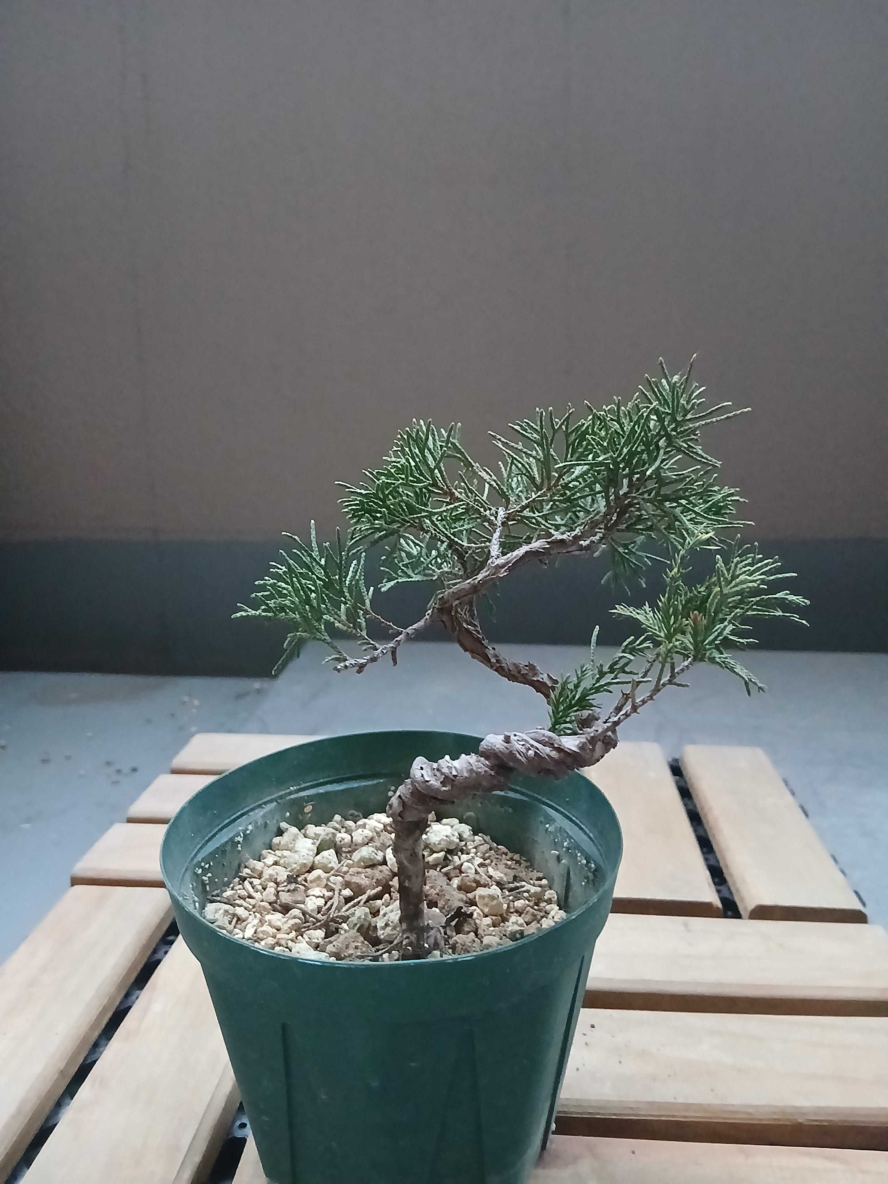 この代表からいただいた糸魚川真柏ですが、その幹には針金が深く食い込んだような激しい「うねり」が刻まれています。