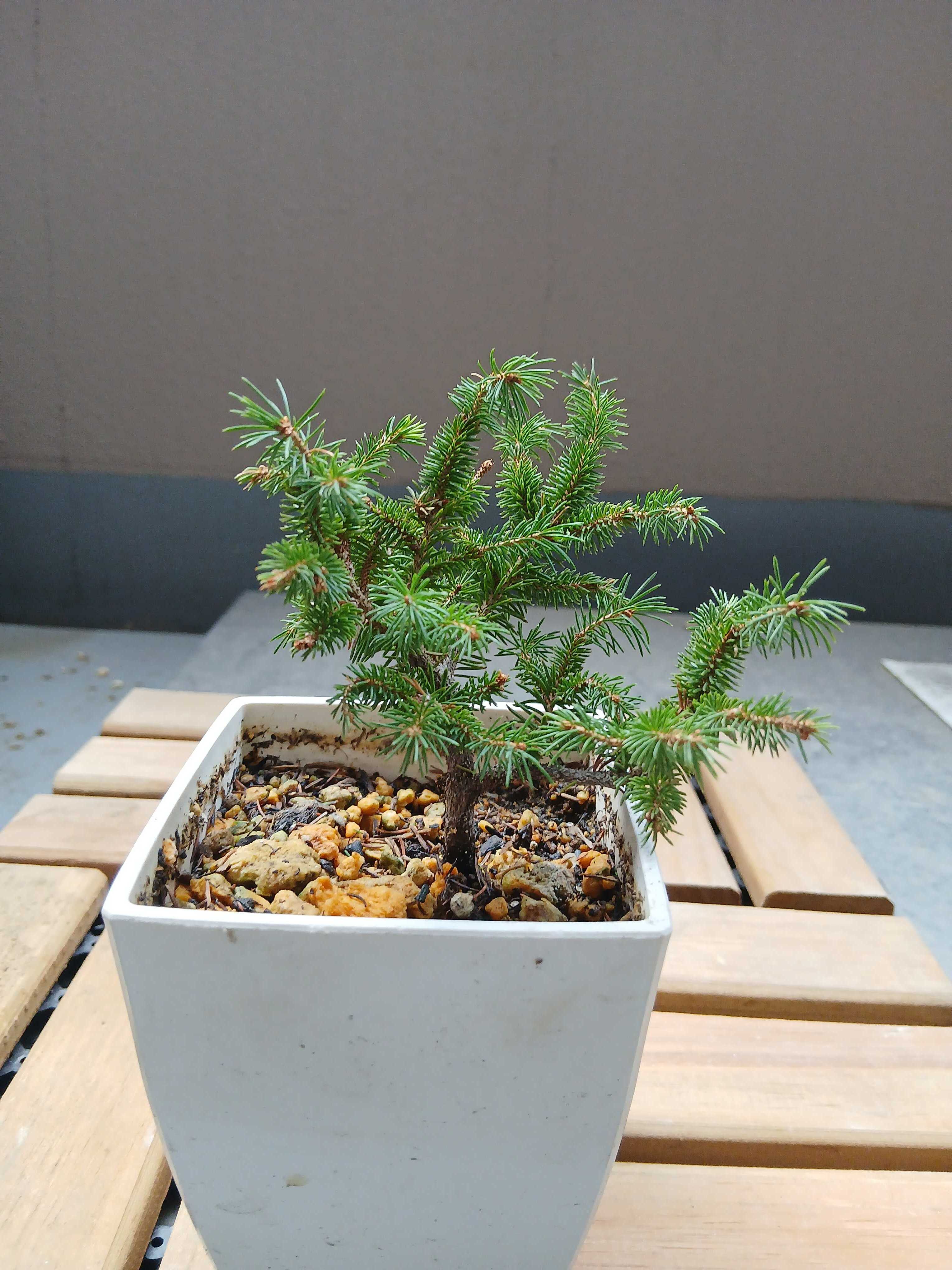 蝦夷松の鉢ですが、成長が遅いので代表から昨年いただいてからまだ少しの変化しかありません。