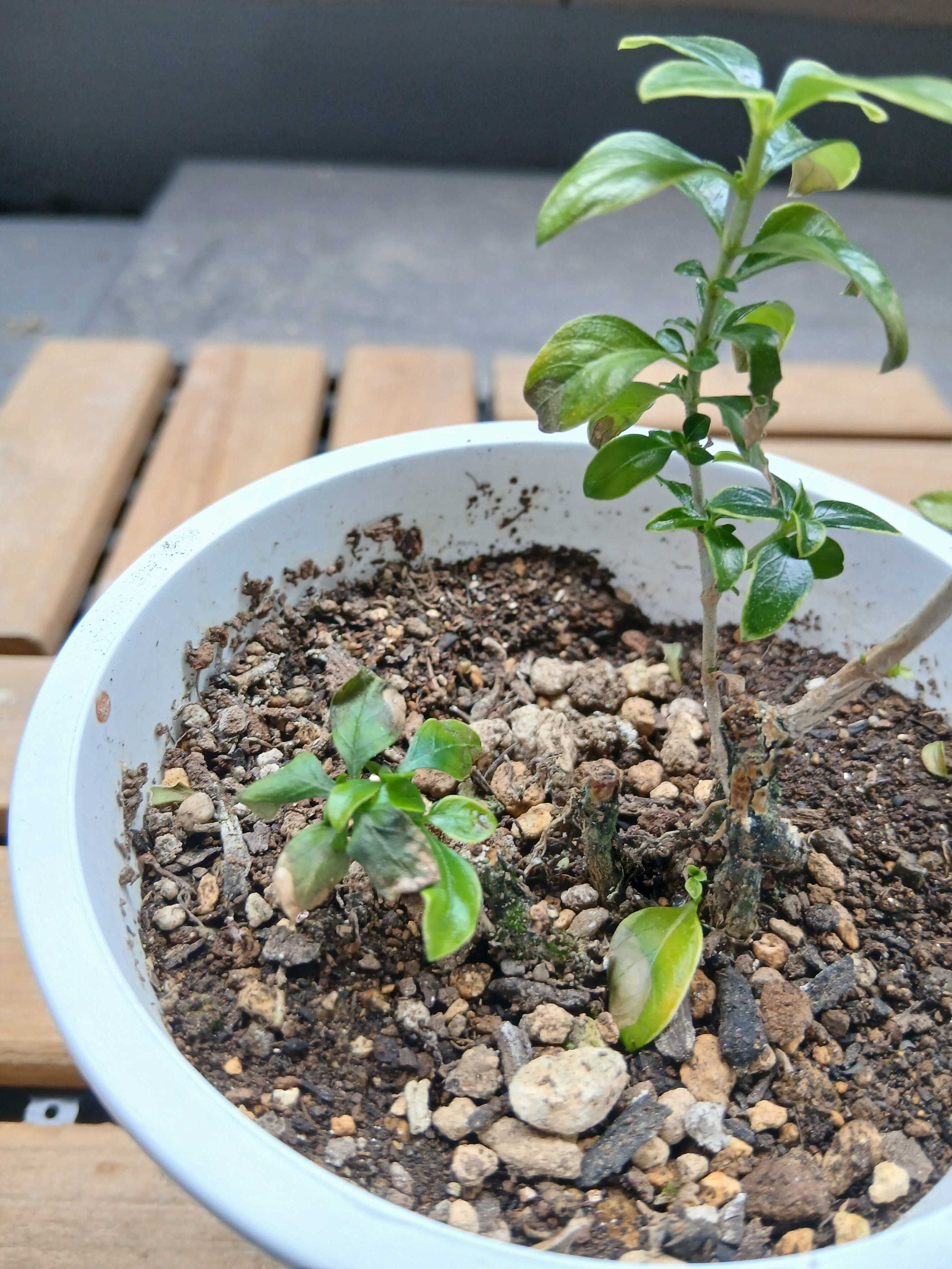 さらに小さい鉢に植えて幹を見せ、"木"の姿に作り込んでいく楽しみ方もあるようです、残す枝を選びながら少しずつ樹形を整えていく本格的なミニ盆栽のような仕立てのようです、私自身はこの盆栽寄りの形を目指してみたいと思っています。