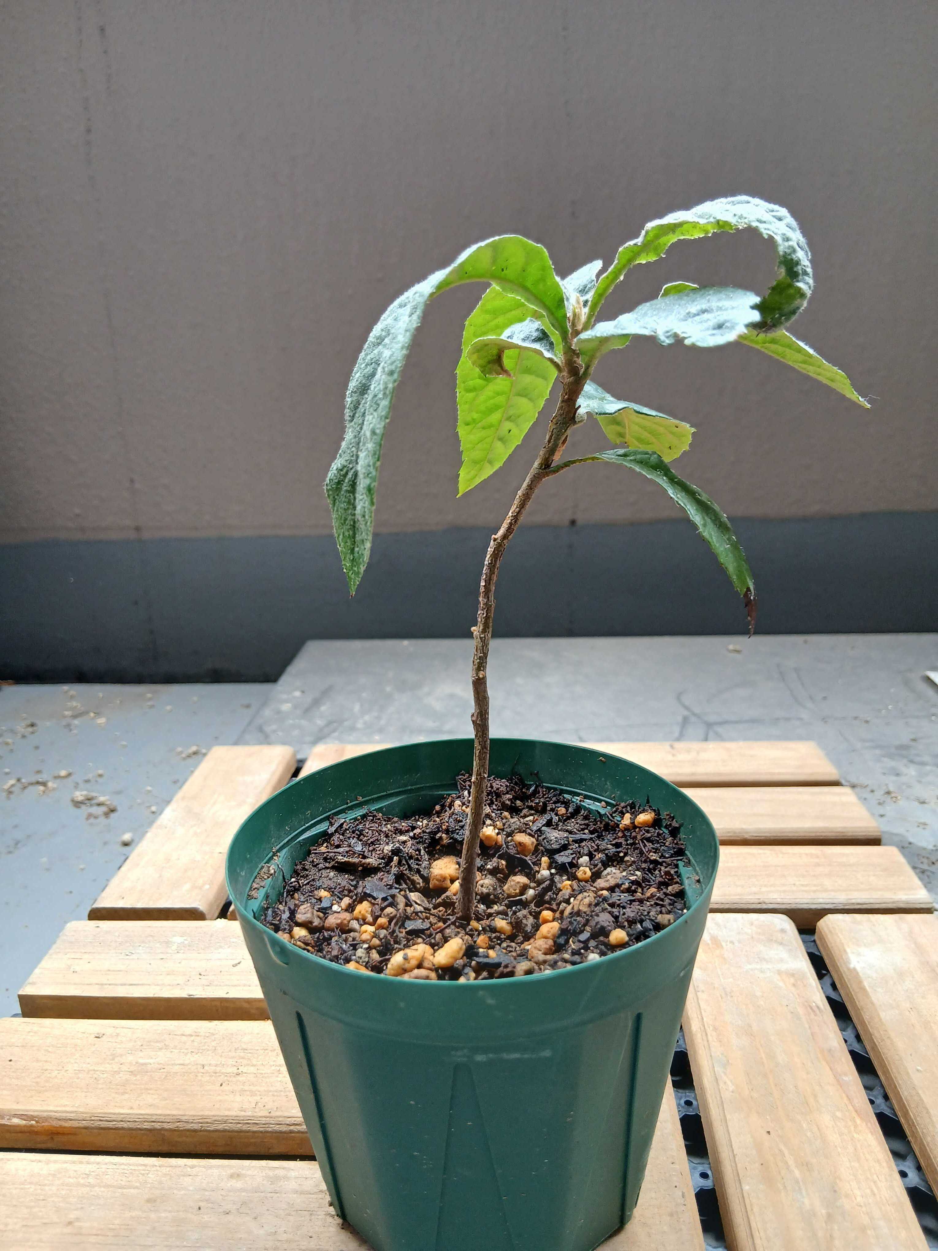 ビワは本来は外で育てますが、最近は気温が10℃を下回るようになってきたこともあり室内で育てています。