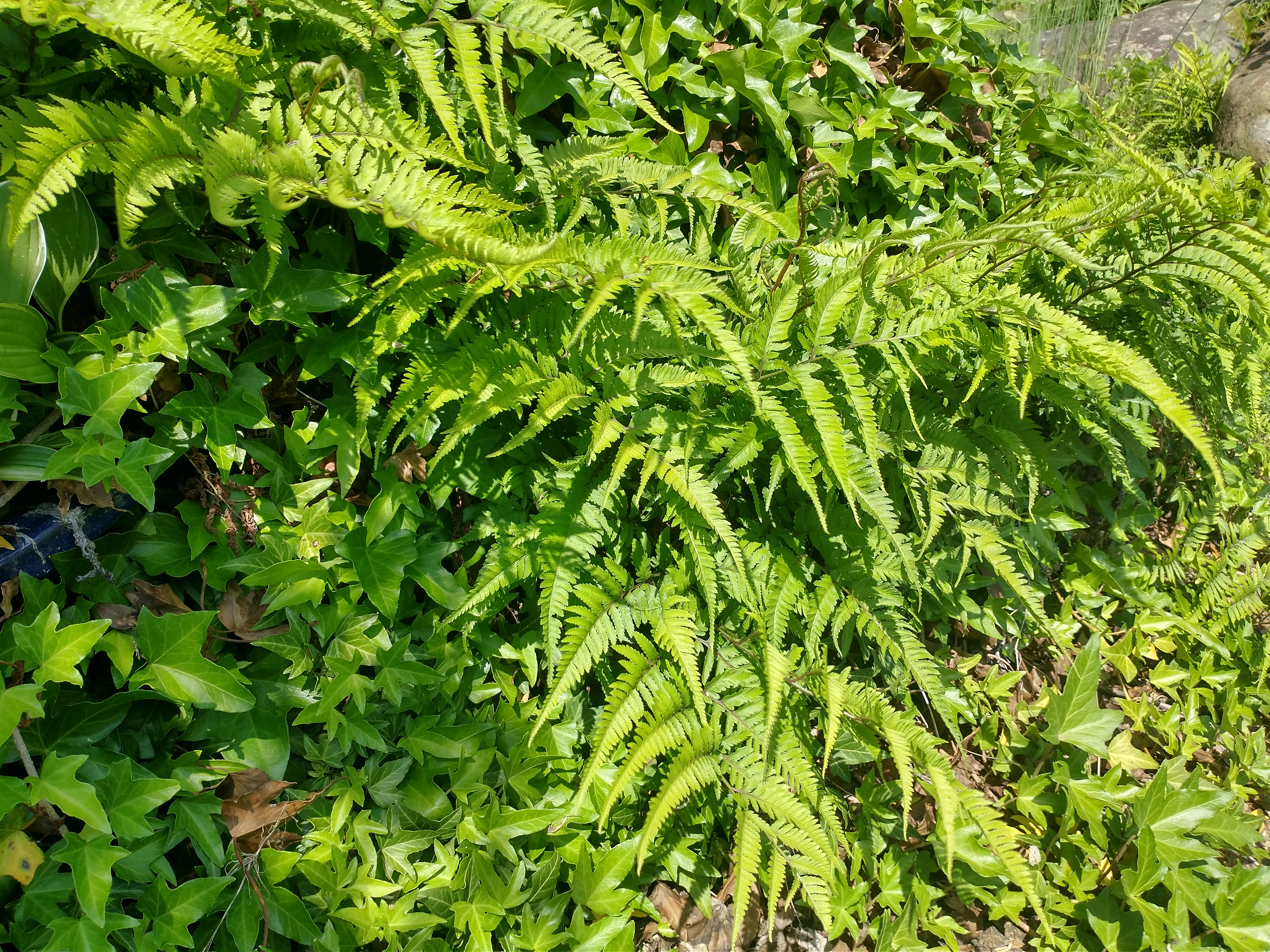 同じガーデン内の見分けがつかないほどカナワラビとよく似ているシダ