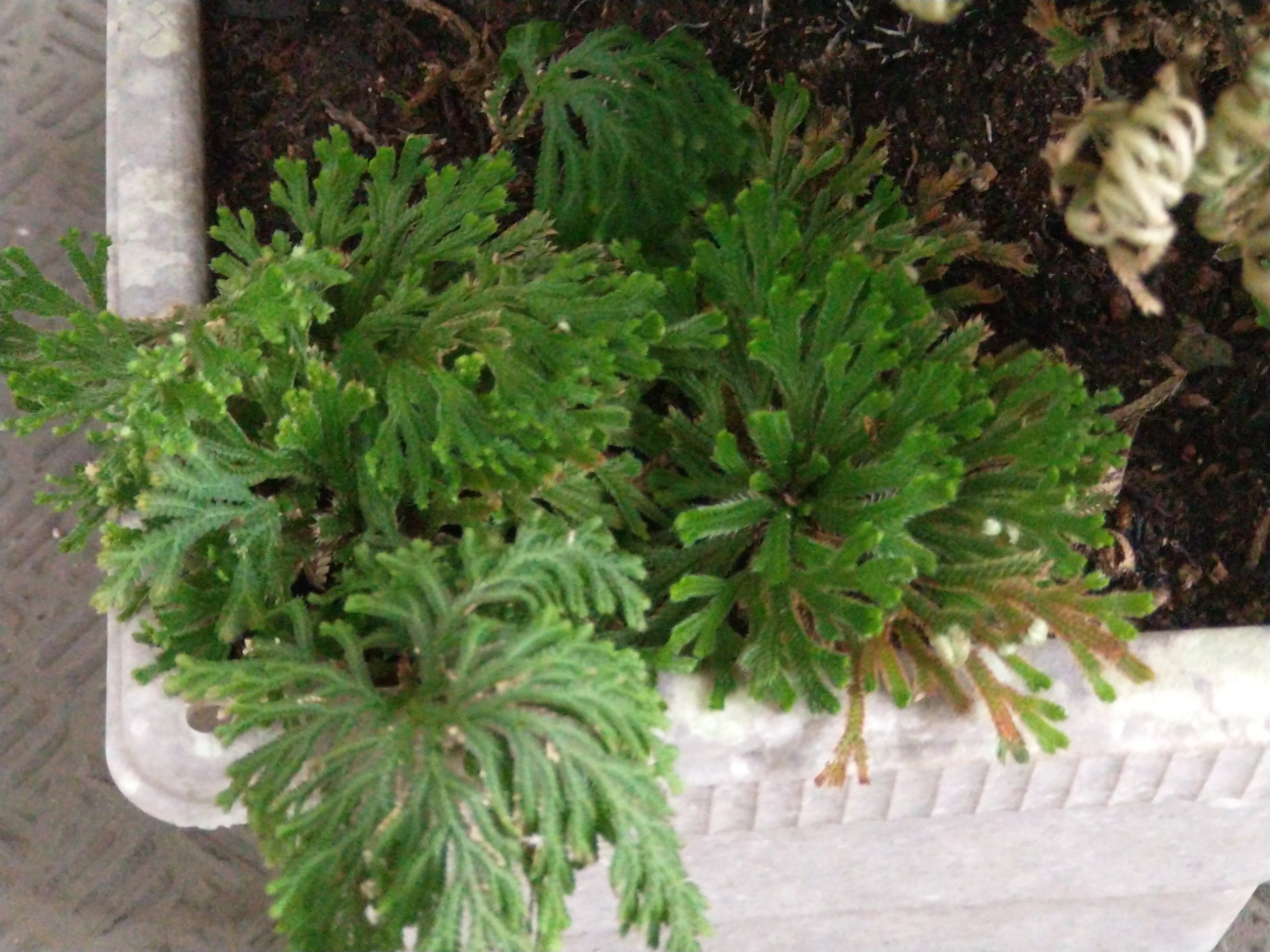 ベランダで育てているイワヒバです、10年以上も経つのに大きさはほぼ変わりません、非常にゆっくり成長するシダです、尚、イワマツと呼ぶ地方もありますが同じものです、江戸時代から園芸用に育てられており現在100種を超える改良品種があり熱狂的なファンも多いです。