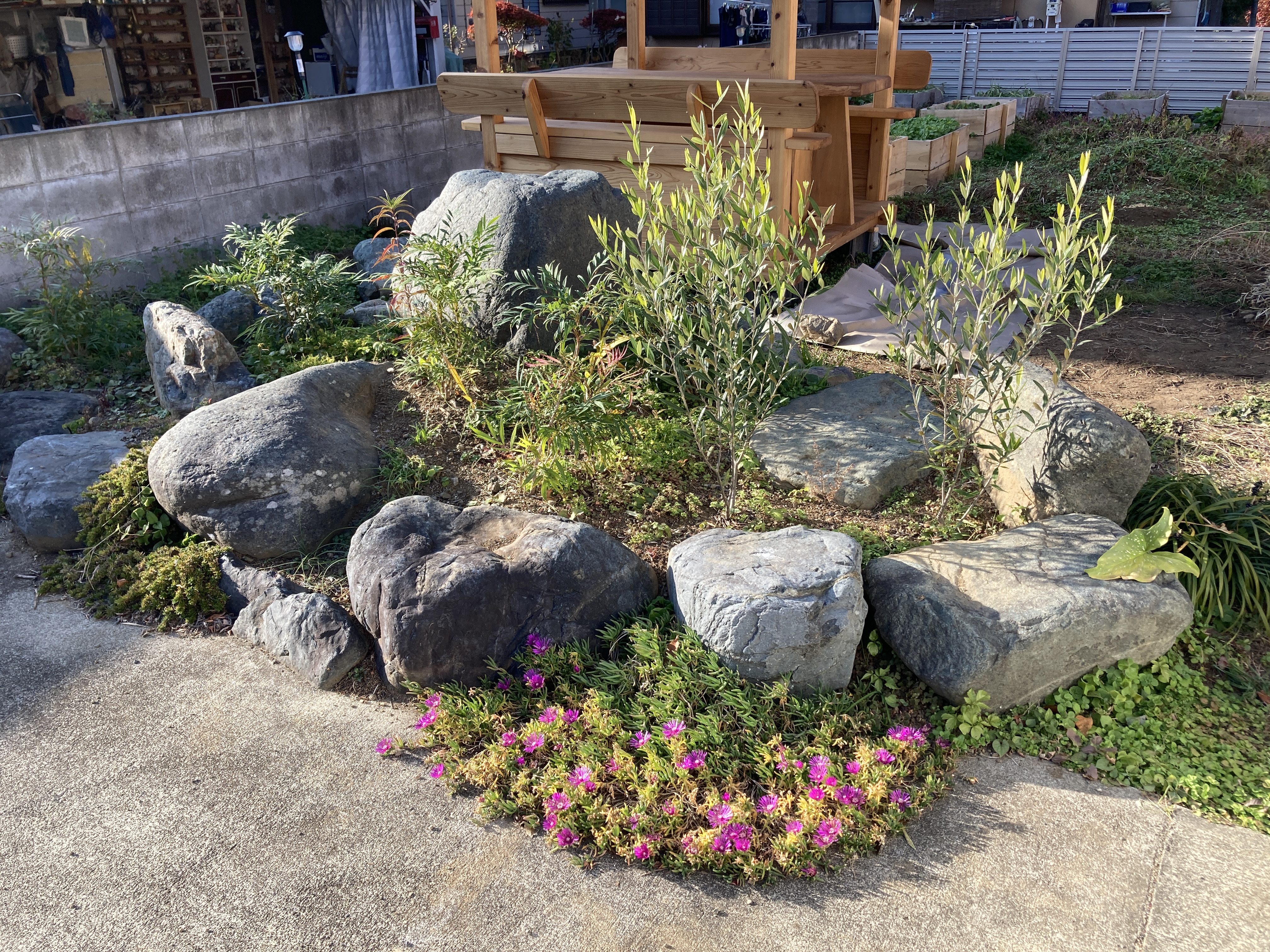 ガーデンにオリーブと共に定植から約半年後の冬前の様子