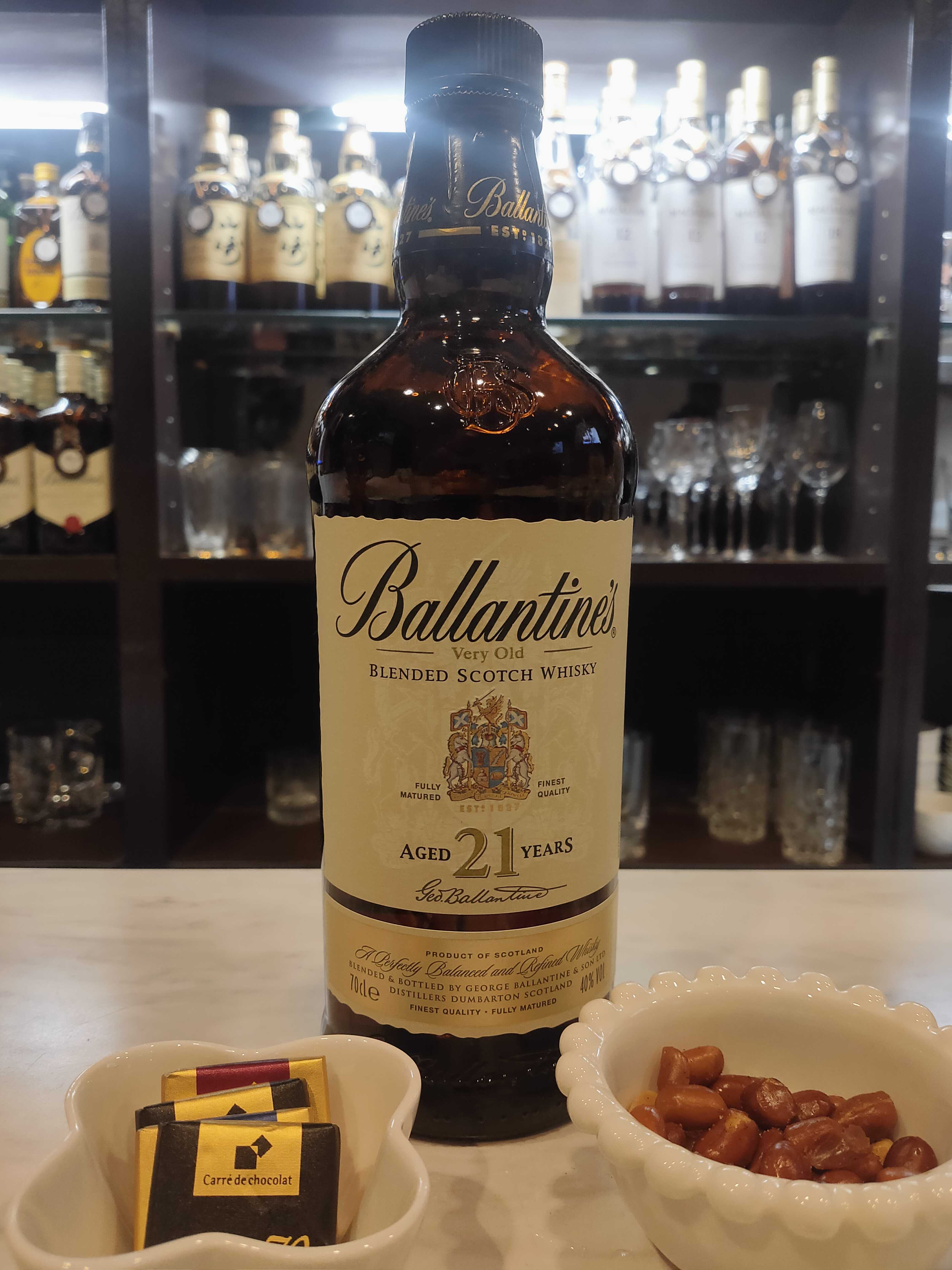 ブレンデッドウイスキーでお馴染みのバランタインの21年旧ラベルです、バランタインのオフィシャルでは30年に次ぐ長期熟成ものでキーモルトは全て21年以上のものをブレンデッドしているので非常に芳醇な香りがします、尚同じ旧ラベルでも並行輸入ものと正規品とでは若干異なります、更に同じ正規品でも出荷ロットにより「21」の文字色が異なります。