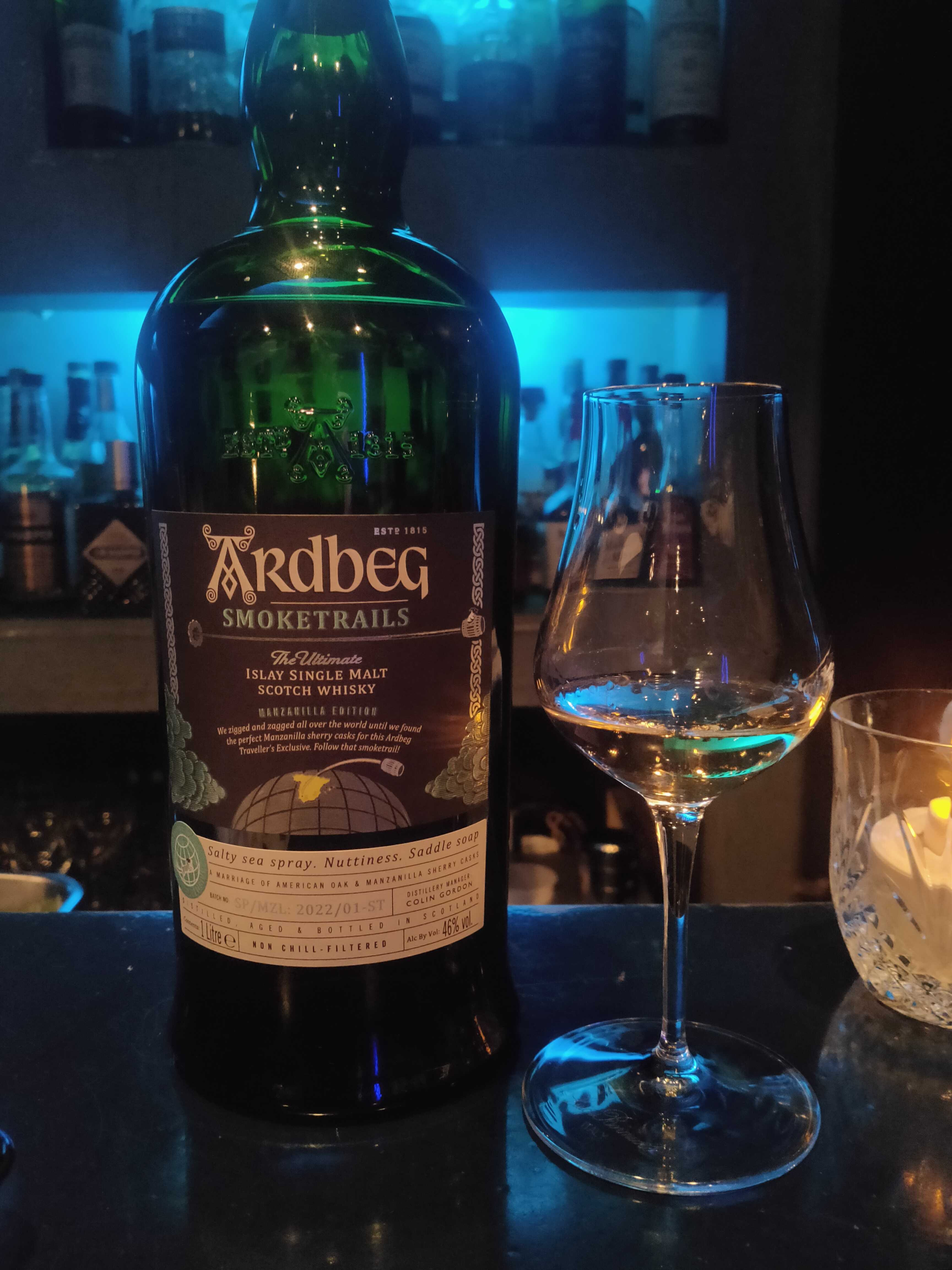 アイラモルトの代表格ともいえるアードベックは過去数々のレギュラーラインアップ以外のスペシャルボトルを出してきました、その中で最も新しいスペシャル版がこのスモークトレイルです、スモークトレイルはカスクが異なる3種が存在しており本ボトルはマンサニーリャカスクになります。