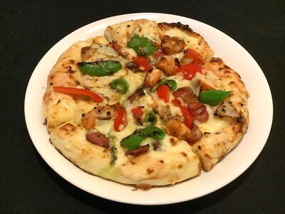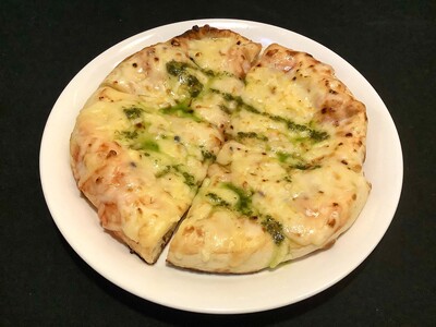 ピザの生地にナンを使っています。(受取日当日ご対応可能)